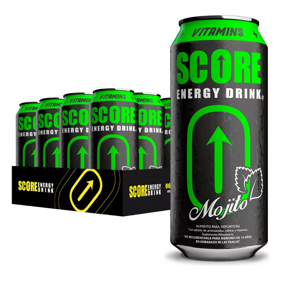 Descubre el sabor refrescante del Pack de 12 latas de Score Energy Drink Mojito 473mL, una combinación perfecta de cafeína, taurina, azúcar y agua pura de los Alpes austriacos con el inigualable toque del mojito.